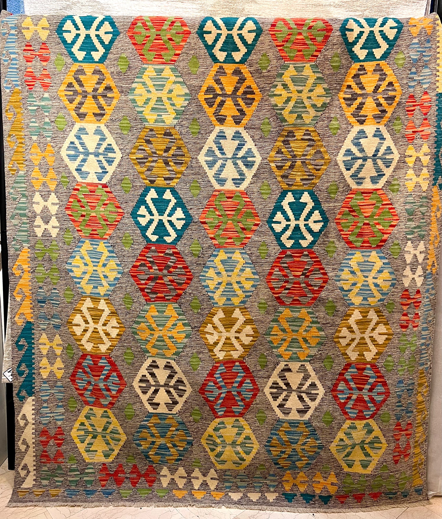 Tapis d'Orient Kilim 100% Laine Vierge Losange Coloré