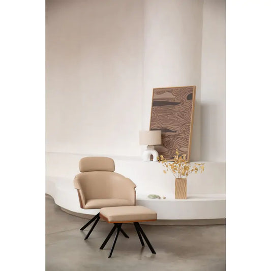 Fauteuil Lounge Frie en Cuir Beige et Noyer - Zuiver