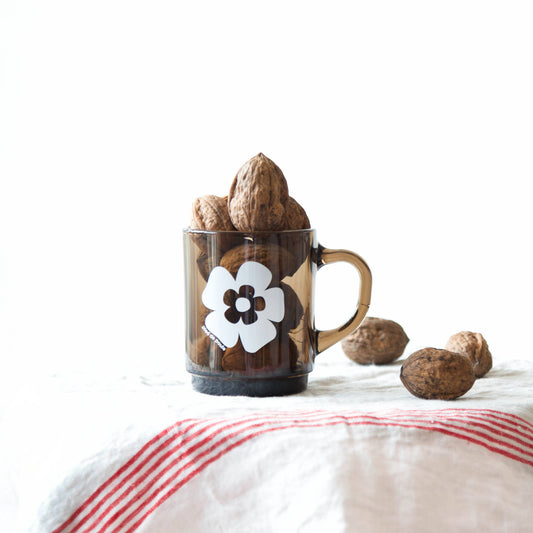 Set de 4 Mugs en Verre Rétros Gris Fumé Fleurs - Duralex