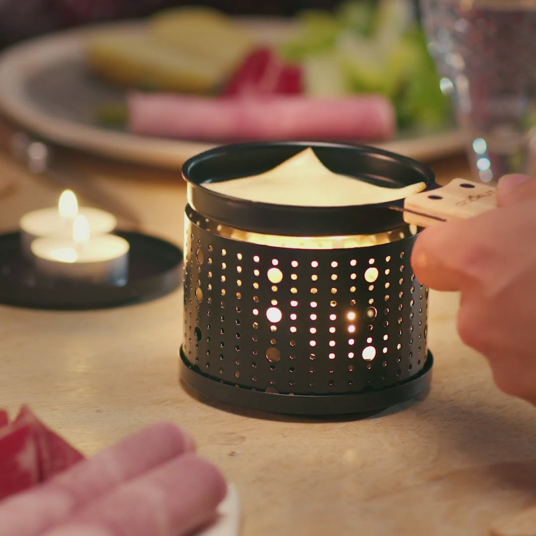 Chaque convive dispose de son propre appareil, offrant une expérience personnalisée et chaleureuse. Le Set de 4 Appareils à Raclette à la Bougie - Cookut crée une ambiance détendue et conviviale, tout en prenant soin de l’environnement et en réduisant l’encombrement grâce à son format compact.