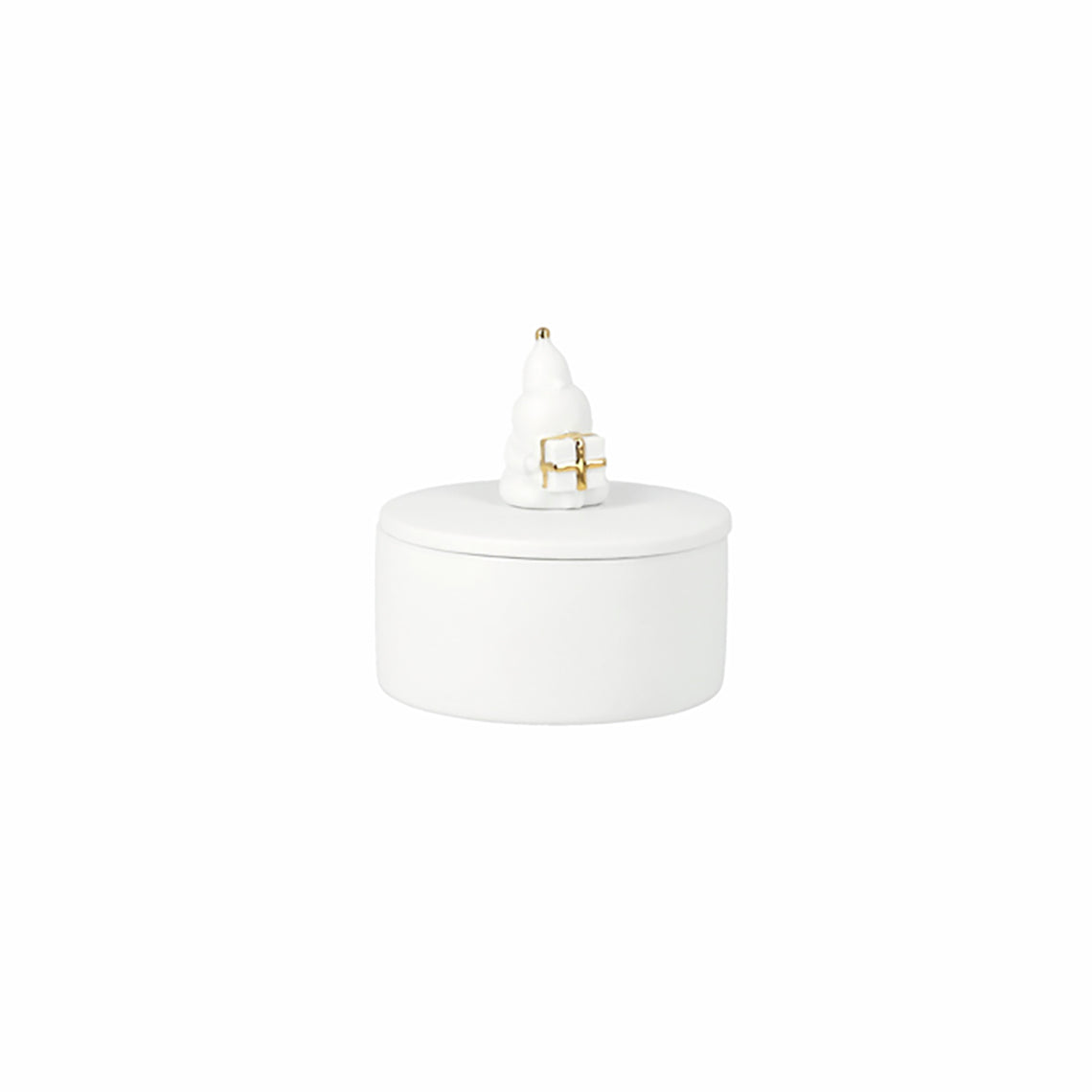 Avec son diamètre de 8,5 cm et sa hauteur de 9 cm, cette boîte trouve facilement sa place sur une table de fête, une étagère ou un rebord de fenêtre. Son style épuré, dominé par le blanc et rehaussé de détails dorés, lui permet de s’accorder aussi bien aux ambiances scandinaves qu’aux décorations traditionnelles. Elle devient un véritable petit écrin qui évoque la magie de Noël tout en restant sobre et contemporaine.