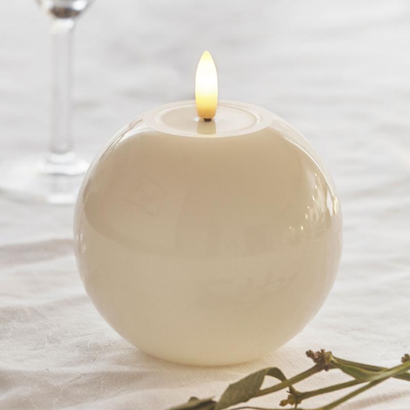 Apportez une touche de raffinement à votre intérieur avec la Bougie LED Ronde en Cire Sirius. Véritable objet décoratif, cette bougie sphérique séduit par sa surface laquée et sa flamme LED vacillante, aussi réaliste qu’une flamme traditionnelle. Disponible en ivoire, rouge ou bordeaux, elle s’accorde parfaitement avec vos décorations de Noël ou d’hiver. Avec son diamètre de 10 cm et sa hauteur de 9 cm, elle trouve aisément sa place sur une table de fête, un buffet ou un rebord de cheminée, créant une ambiance chaleureuse et conviviale.