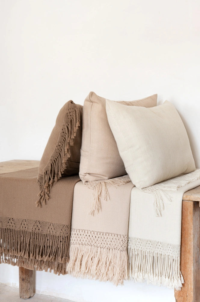 Ses franges élégantes et sa bordure en macramé ajoutent un détail soigné, tandis que sa fermeture zippée et sa garniture incluse en font un choix pratique. Le Coussin Alpaga est un accessoire indispensable pour une décoration chic et confortable.