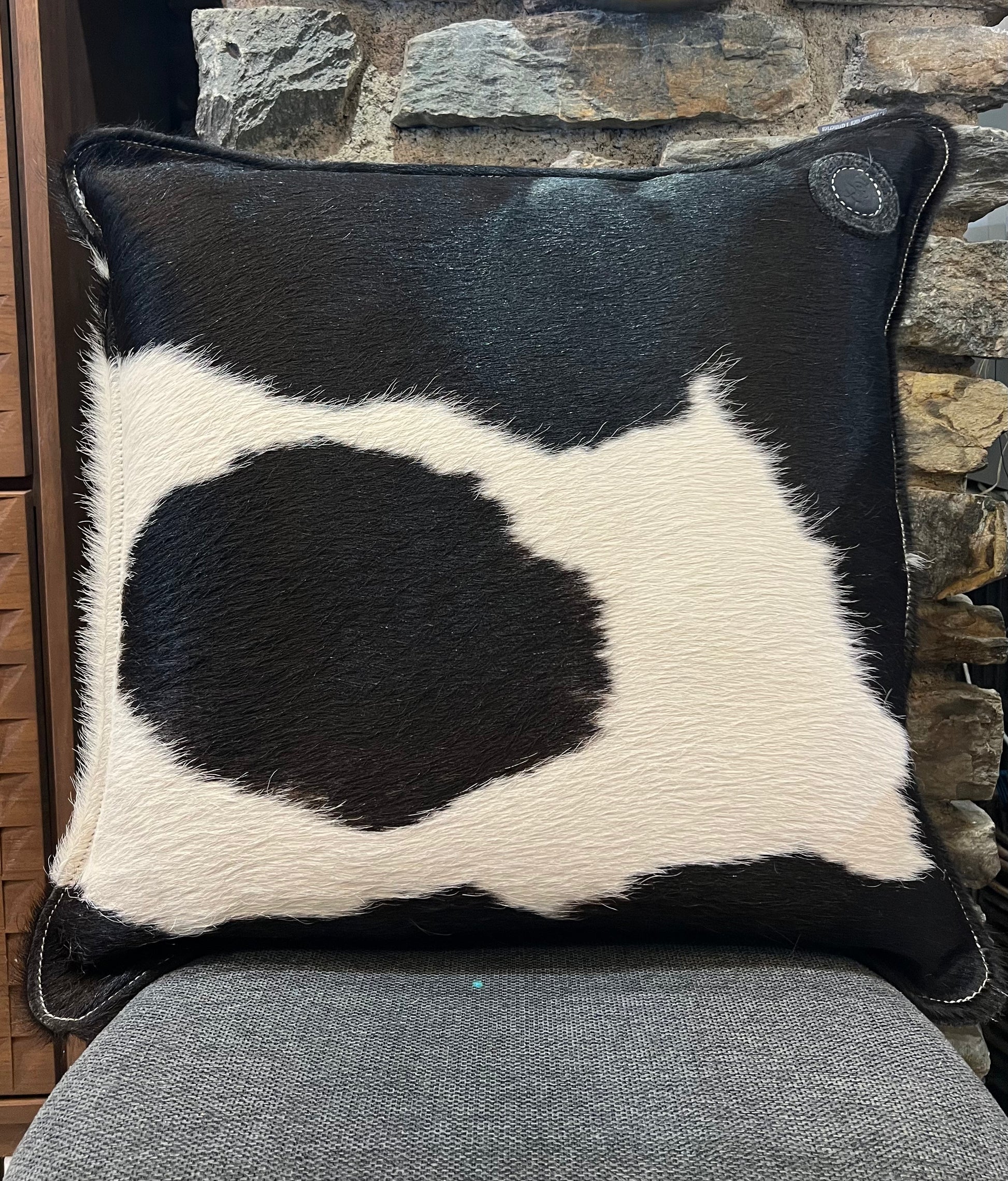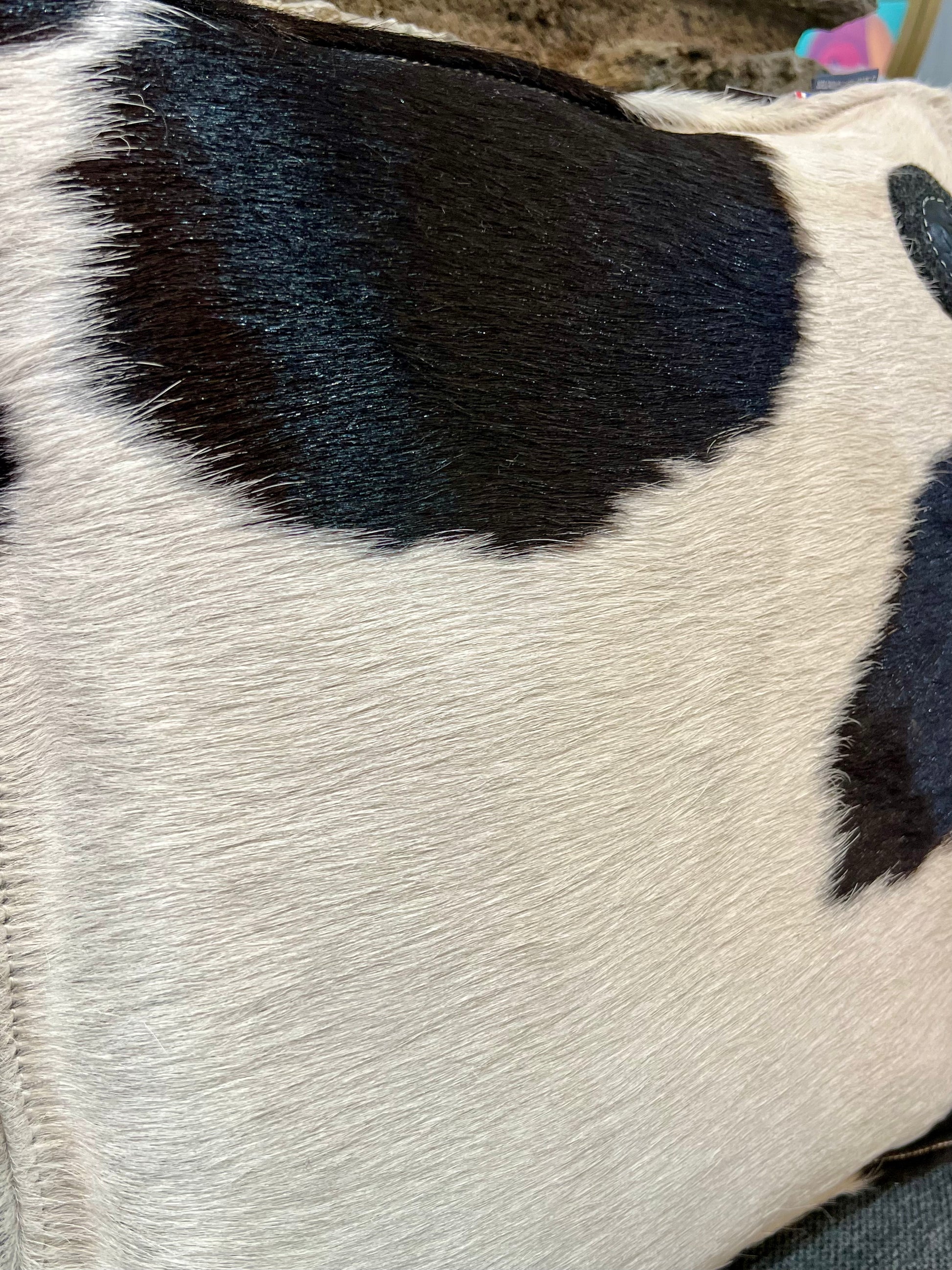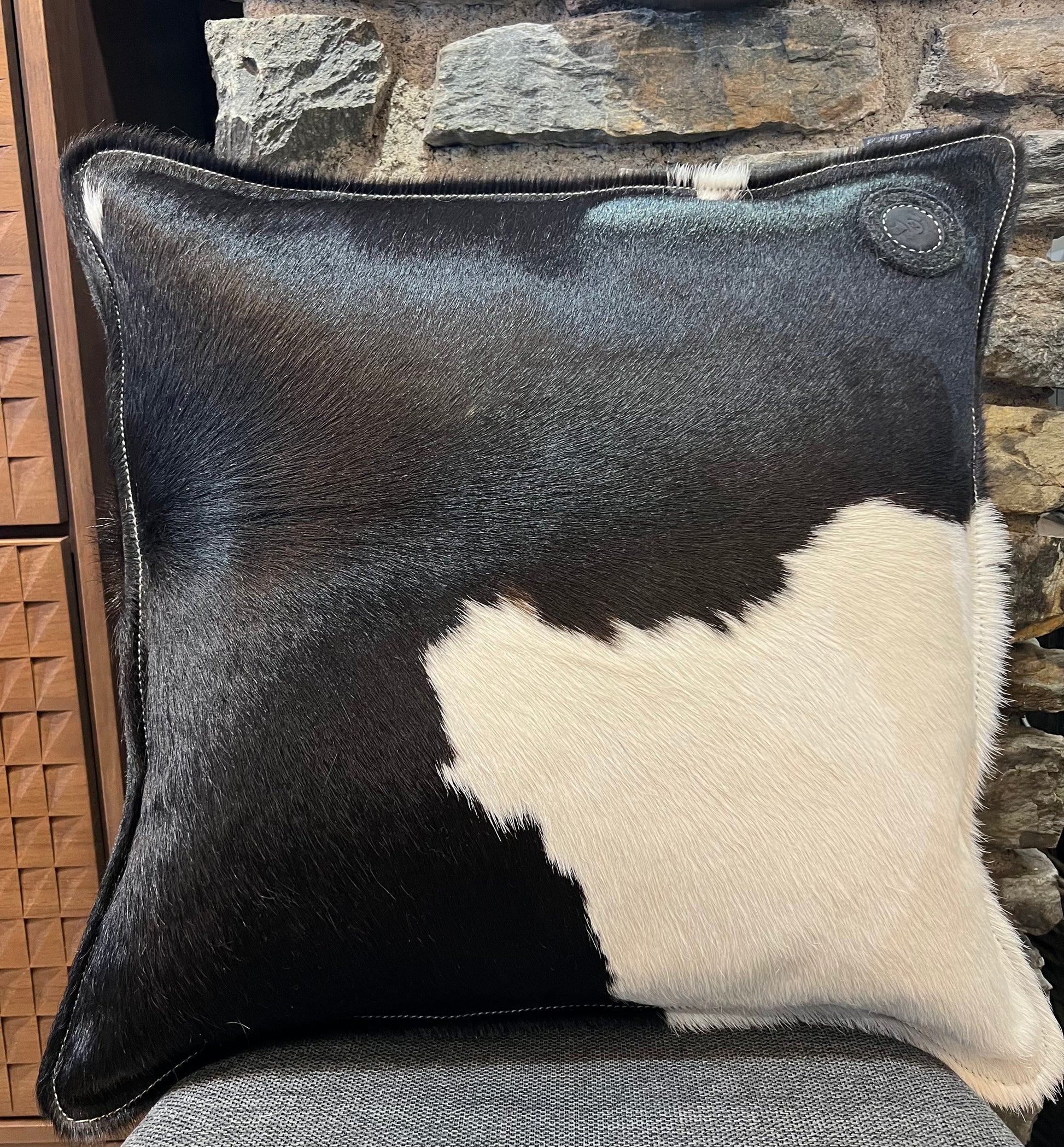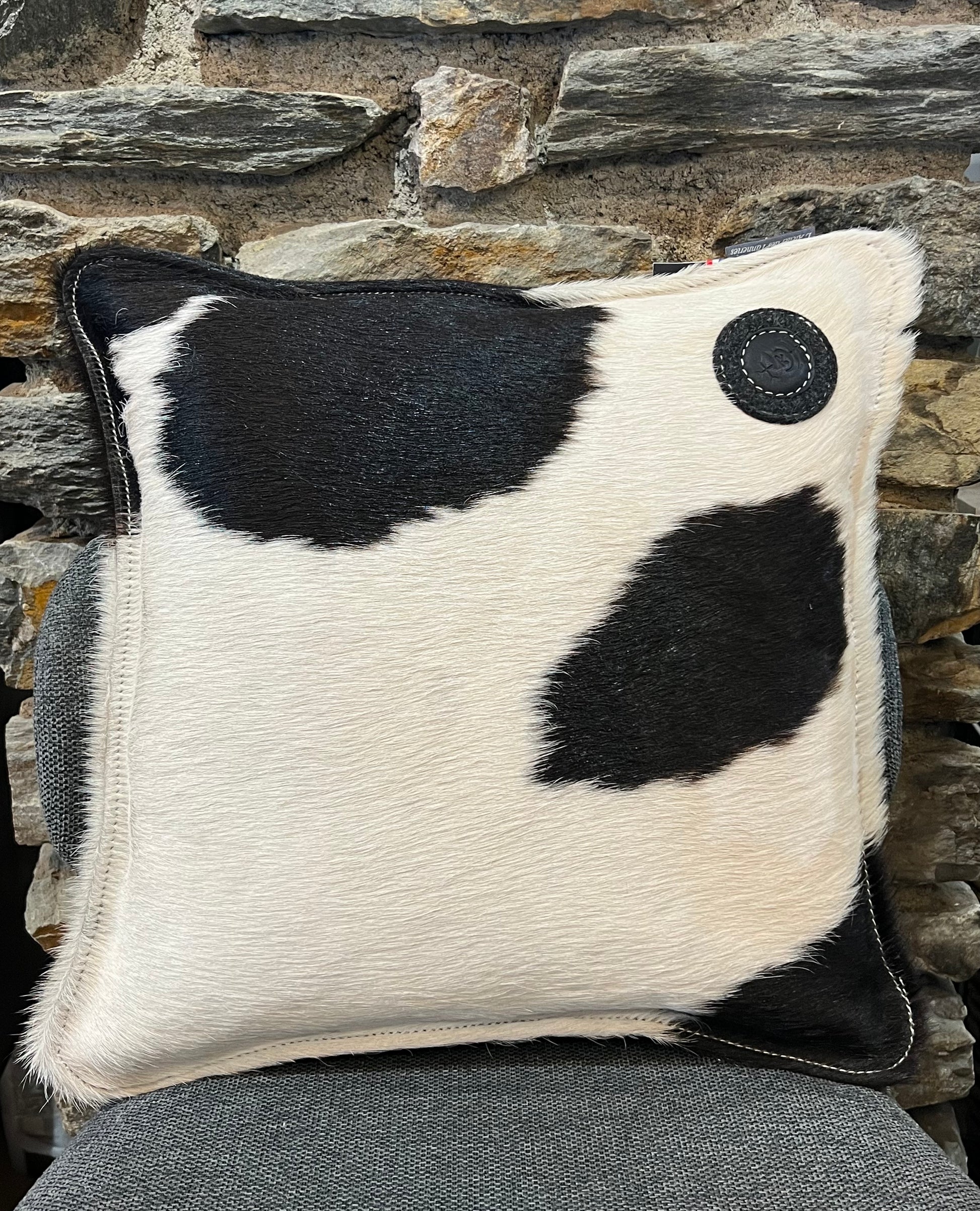 Coussin en Peau de Vache Noir/Blanc et Feutre - L'Atelier des Tanneries