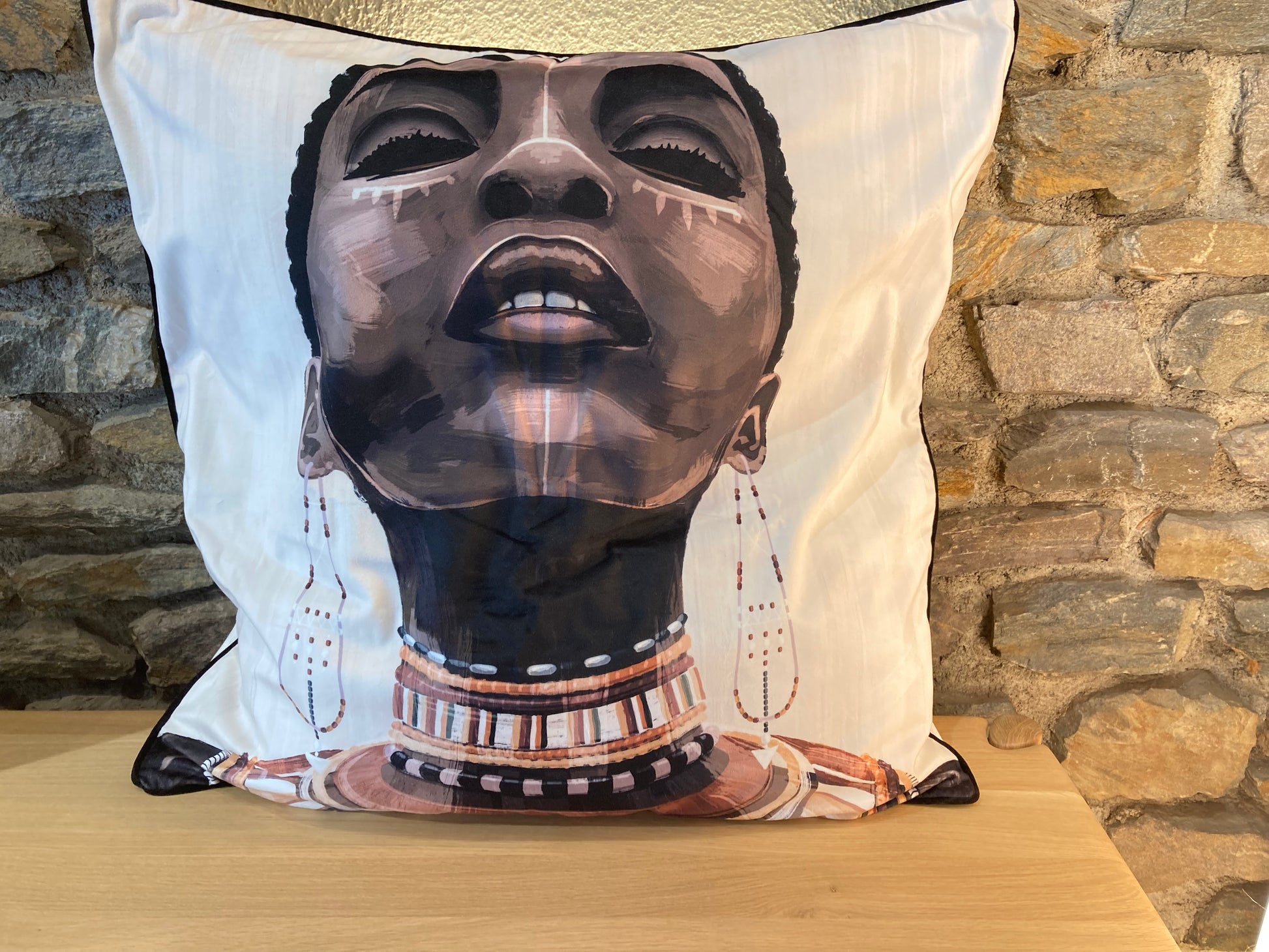 Ajoutez une touche artistique et ethnique à votre intérieur avec la housse de coussin de Podevache. Le motif tribal représentant une femme est à la fois captivant et culturellement riche, parfait pour compléter votre décoration avec style et caractère.