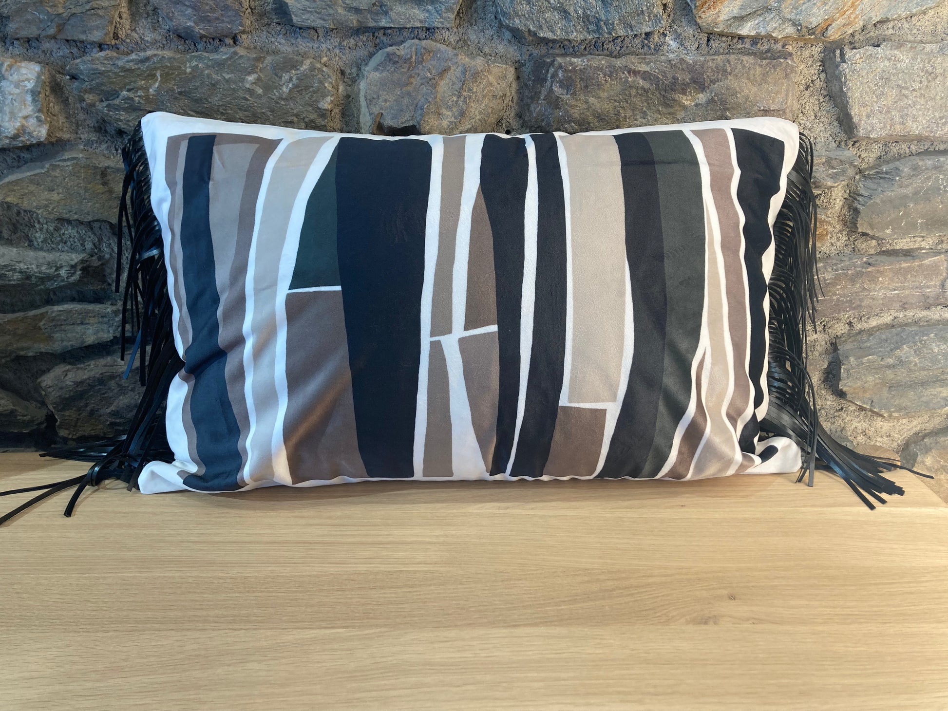 Ajoutez une touche vibrante et contemporaine à votre intérieur avec la housse de coussin à franges de Podevache. Le motif géométrique en multicolore vert/beige crée un ensemble harmonieux et dynamique, parfait pour ajouter de la personnalité à votre décoration