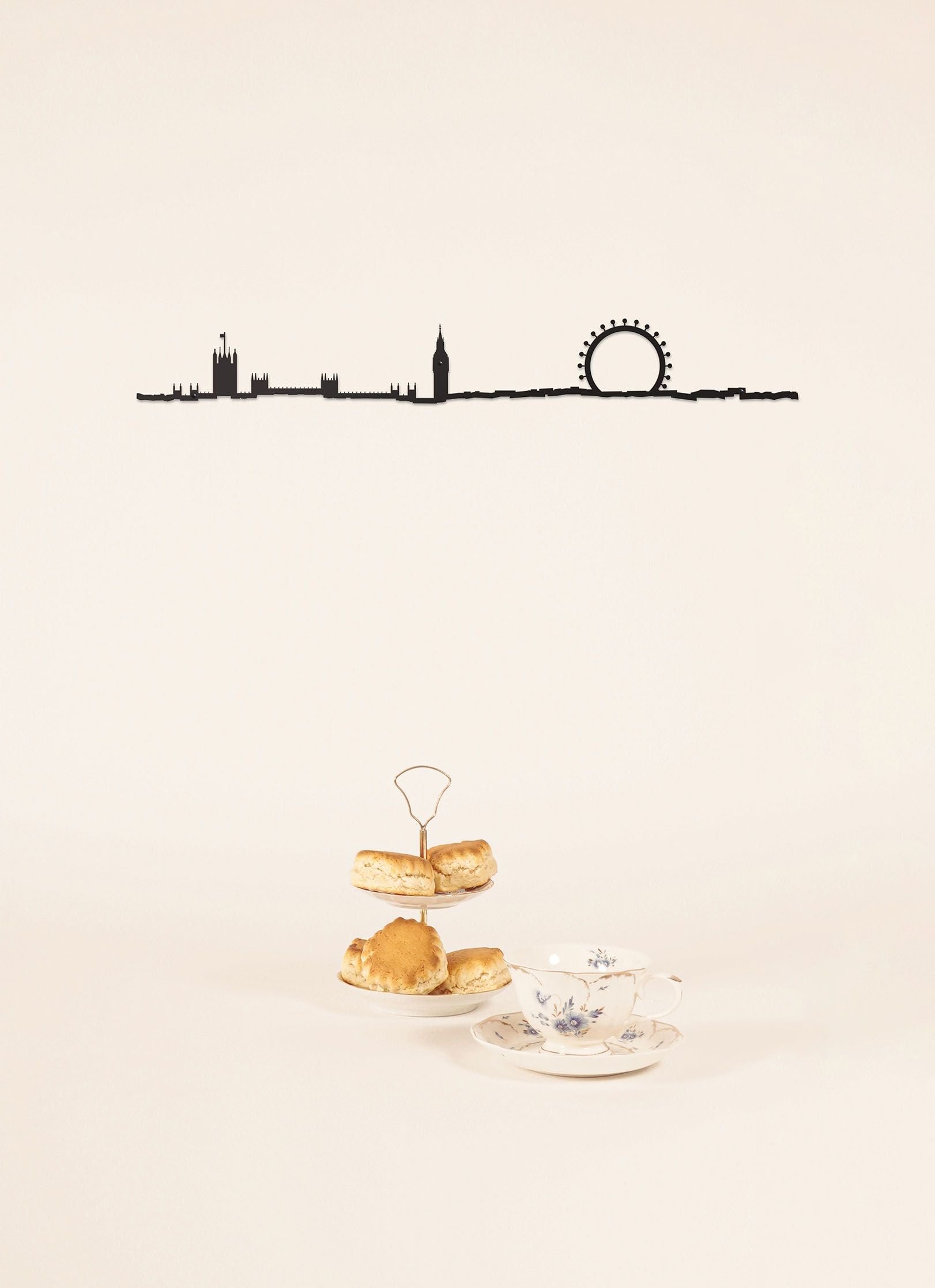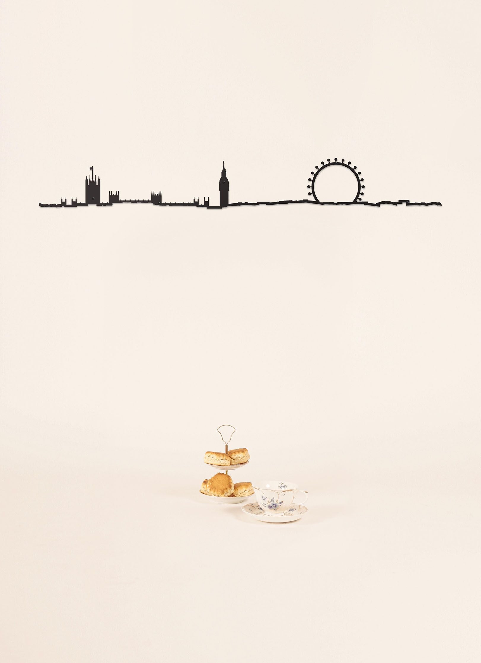 Nous avons représenté la silhouette de Londres depuis les rives de la Tamise.