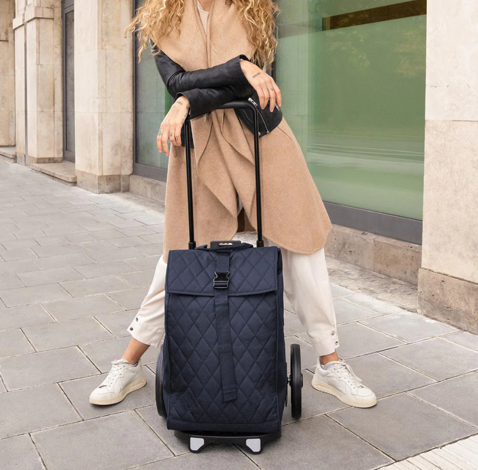 Pensé pour le confort et la fonctionnalité, ce sac comprend un grand compartiment principal sécurisé par sangle et boucle, une poche extérieure zippée pour les essentiels, et des roues à double roulement à billes qui assurent un roulage fluide, même sur les pavés. Fabriqué en polyester recyclé et hydrofuge, il résiste à l’usage quotidien tout en affichant un style élégant décliné en bleu matelassé ou noir à pois blancs. Un accessoire durable, chic et indispensable pour des courses sans effort.