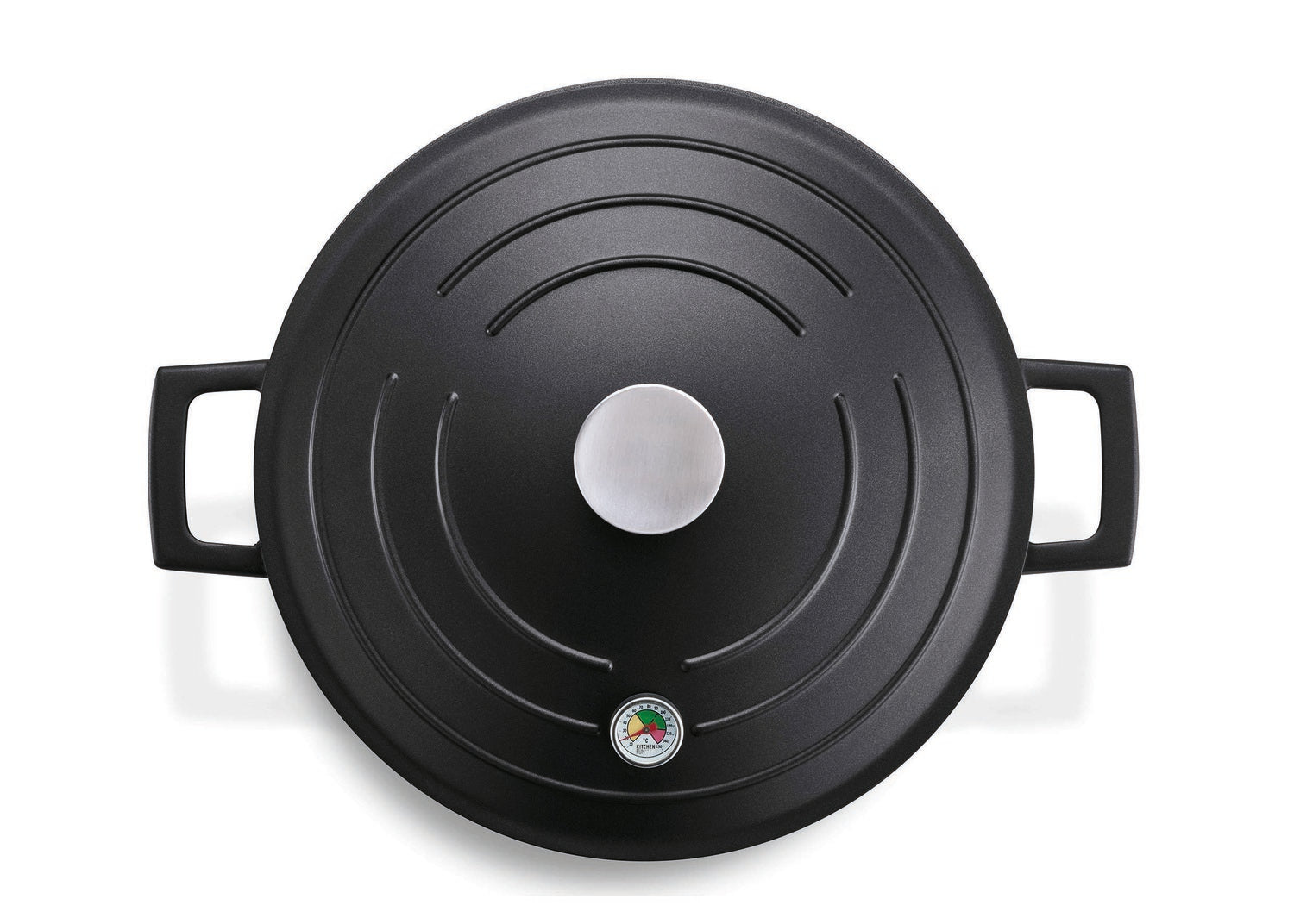 La Sauteuse avec Couvercle Thermomètre Intégré Kitchen Fun allie tradition et innovation pour sublimer vos préparations culinaires. Disponible en diamètres 24 et 28 cm, cette sauteuse Kitchen Fun en fonte d’aluminium légère offre un contrôle précis de la cuisson grâce à son thermomètre intégré au couvercle. Le couvercle de la sauteuse Kitchen Fun est équipé de picots qui arrosent vos plats pour garantir tendreté et saveurs préservées.