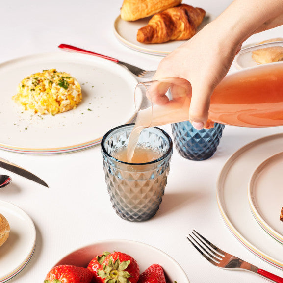 Teintés dans la masse en ambre, fumé, transparent, pourpre, vert et bleu, ils restent éclatants au fil du temps et sont compatibles lave-vaisselle, parfaits pour un usage quotidien ou vos moments conviviaux.