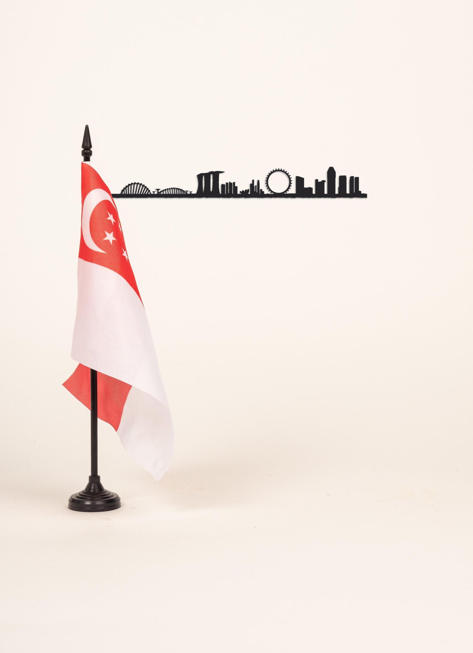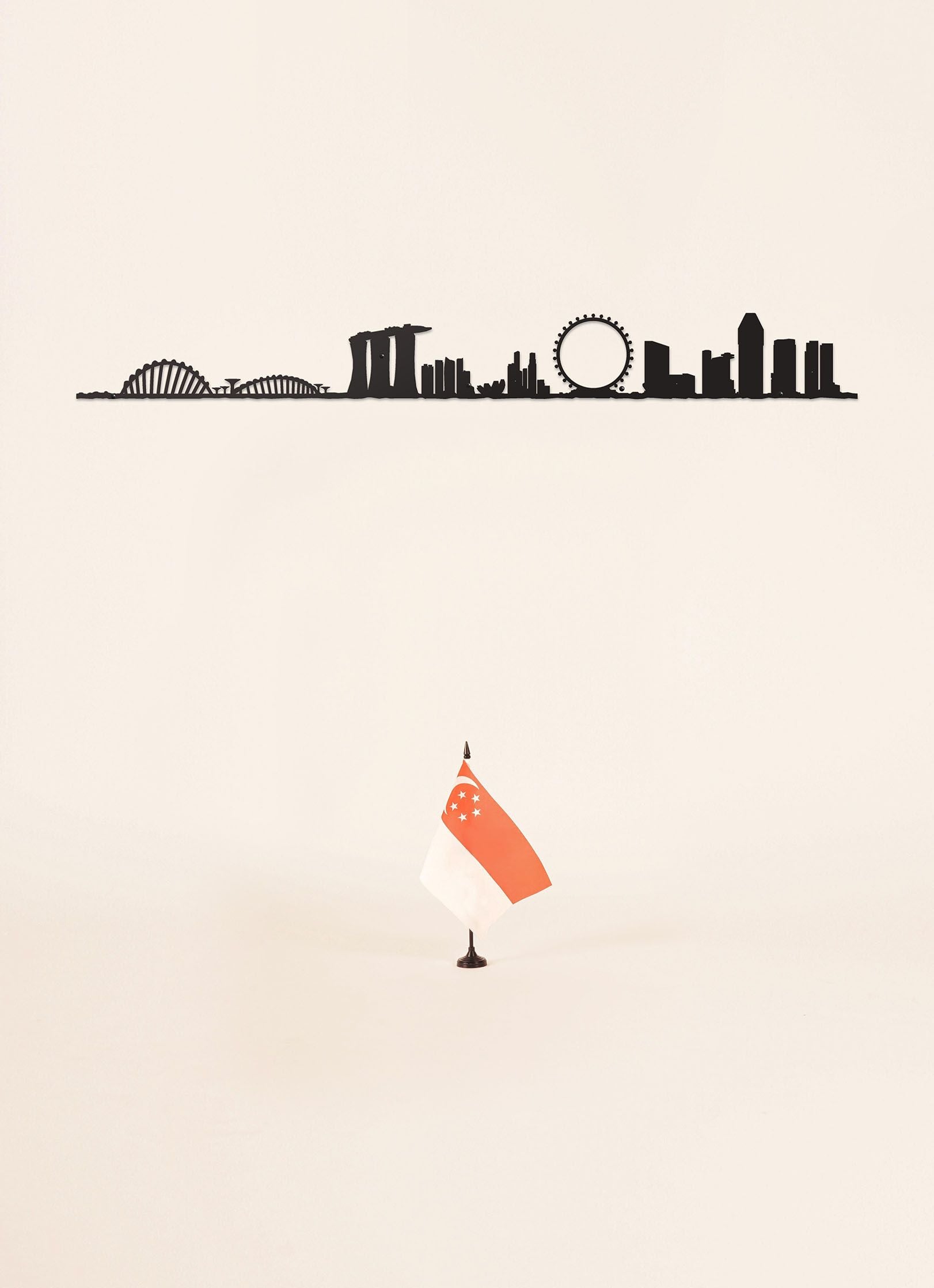 Nous avons représenté la silhouette de Singapore depuis les rives de Marina Bay.