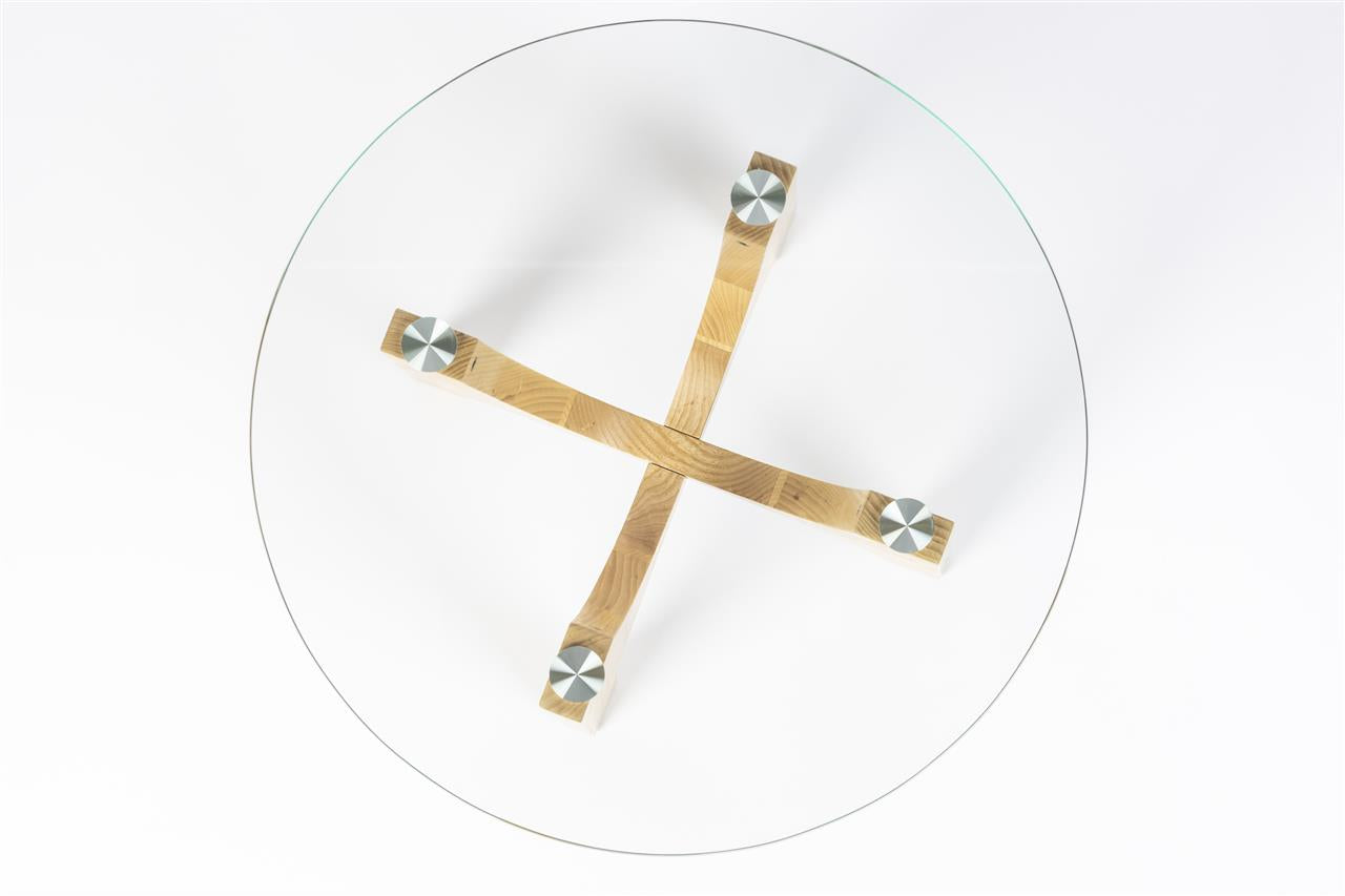 Bois de frêne et verre.