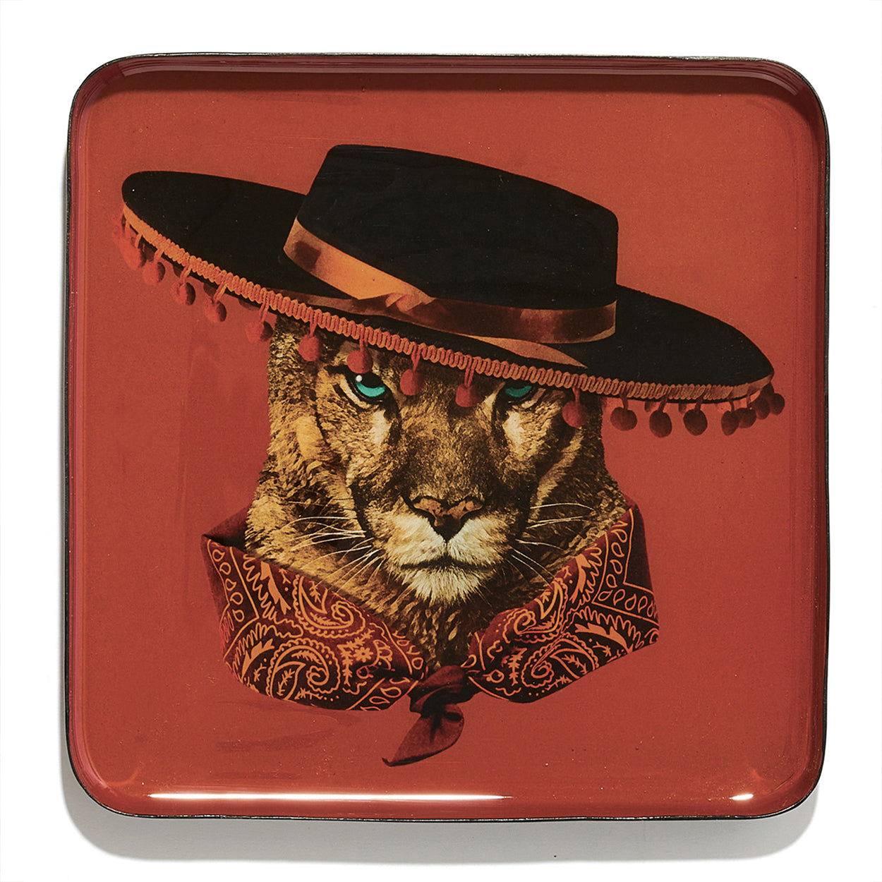 Vide-Poches Carré en Fer Vernis Coloré et Illustration - Gangzaï