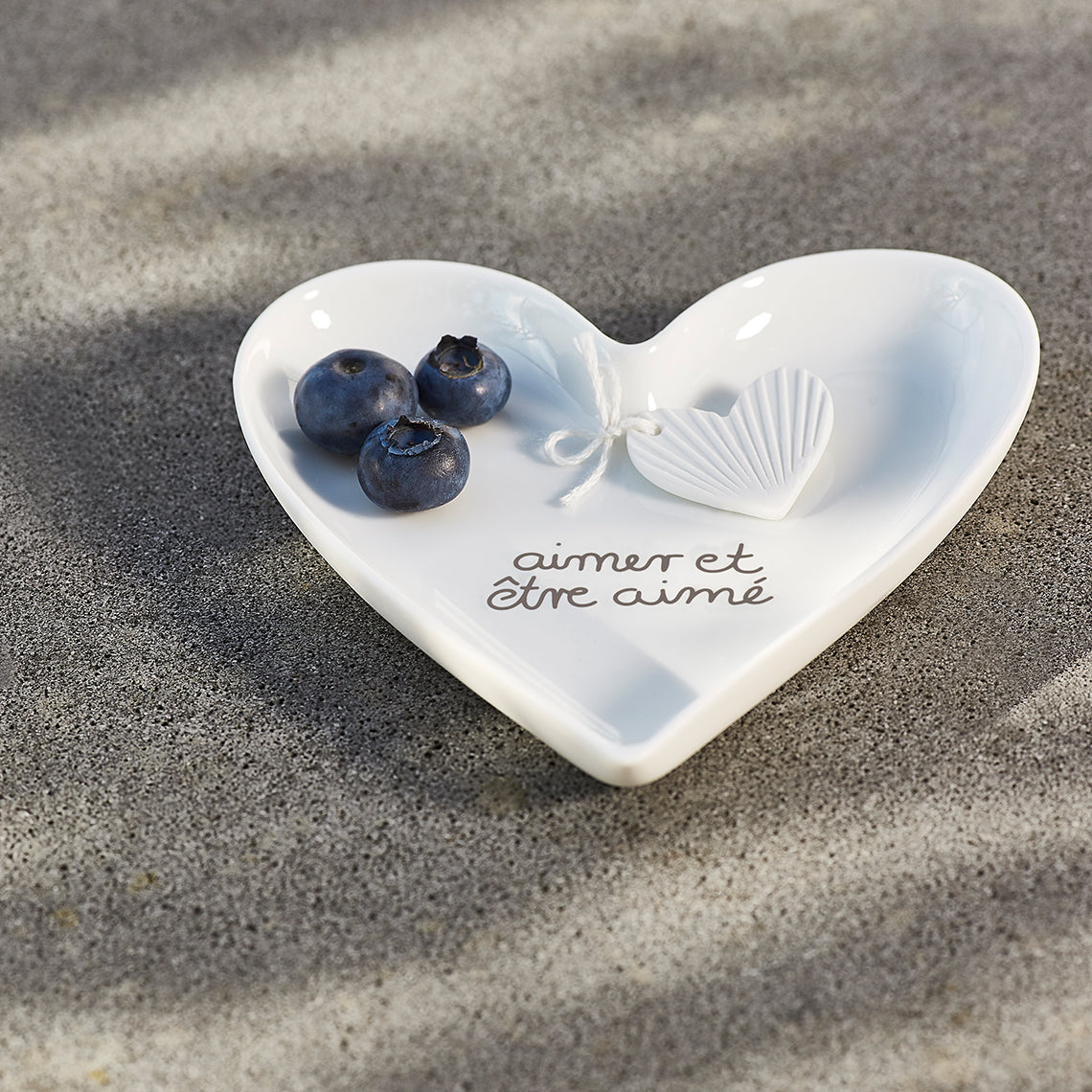 Ce vide-poches en forme de cœur apporte une touche de tendresse et de pureté à votre décoration. Sa surface lisse et brillante capte la lumière avec douceur, sublimant vos petits effets personnels. Bien que résistant, il nécessite des précautions d’usage : il ne passe ni au four ni au micro-ondes, et doit être lavé à la main pour préserver ses finitions.